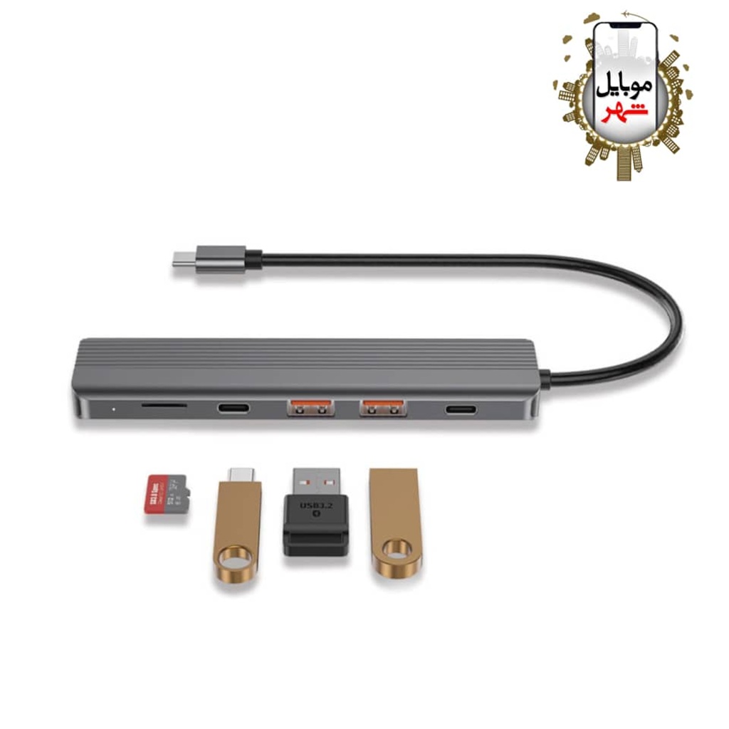 هاب 6در1 USB-C با کیفیت 4K HDMI پاورولوژی مدل P61HBCGY